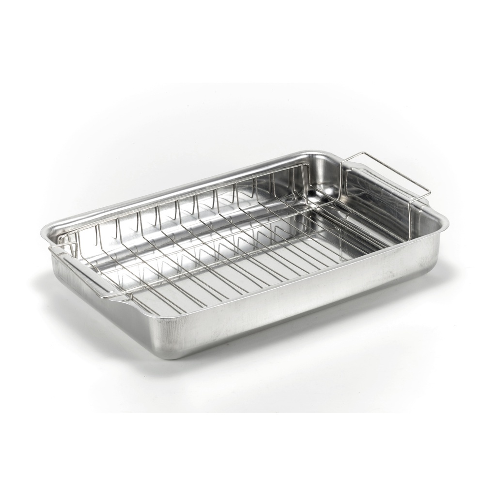 Tabuleiro Forma Assadeira Retangular Alta com Abas + Grelha Alumínio Polido - Ideal para Carnes e Aves no Forno