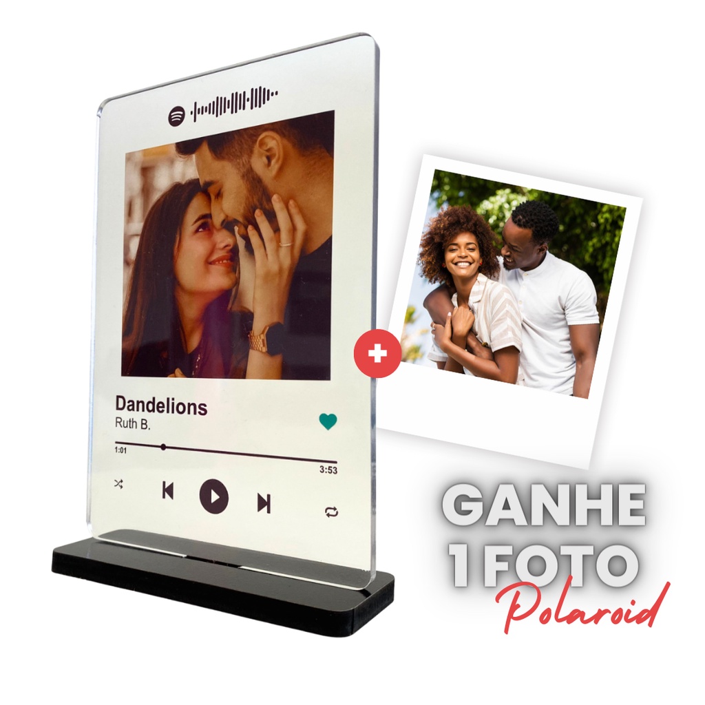 Placa Interativa SPOTIFY com sua foto e música - Presente para namorados, Dia das Mães, Dia dos Pais