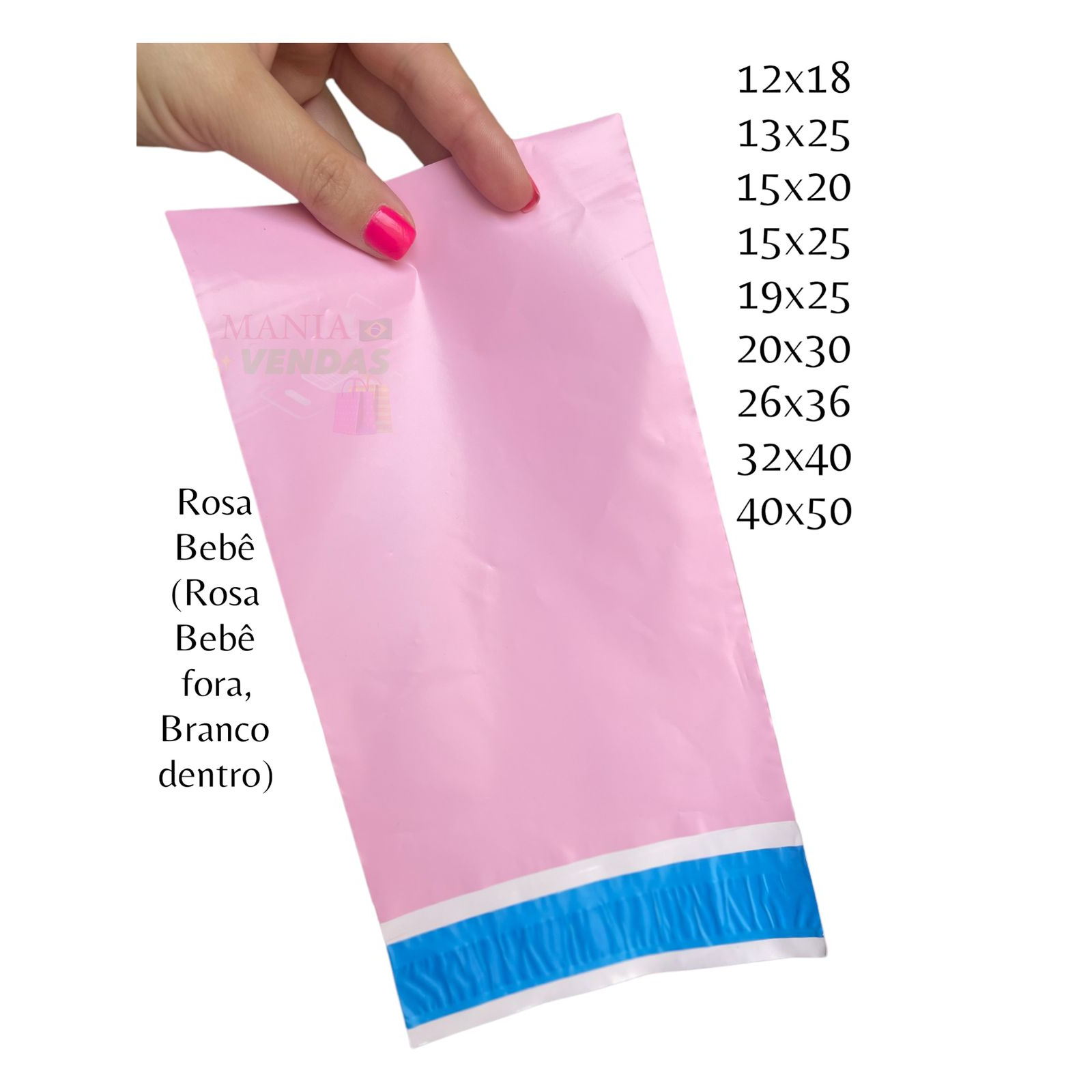 Kit 100 unidades Embalagens de Envio Inviolável Cinza, Rosa, Verde, Rosa bebe, Branco 12X18 15X20 13X25 15X25 19X25 20X30
