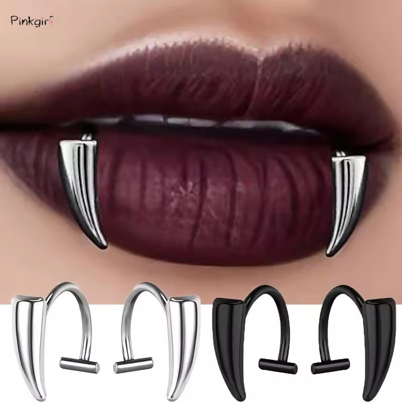 1 Par Punk Gótico Dentes Afiados Em Forma De Sem Piercing Anéis Labiais Mulheres Homens Clipe Labial De Aço Inoxidável J