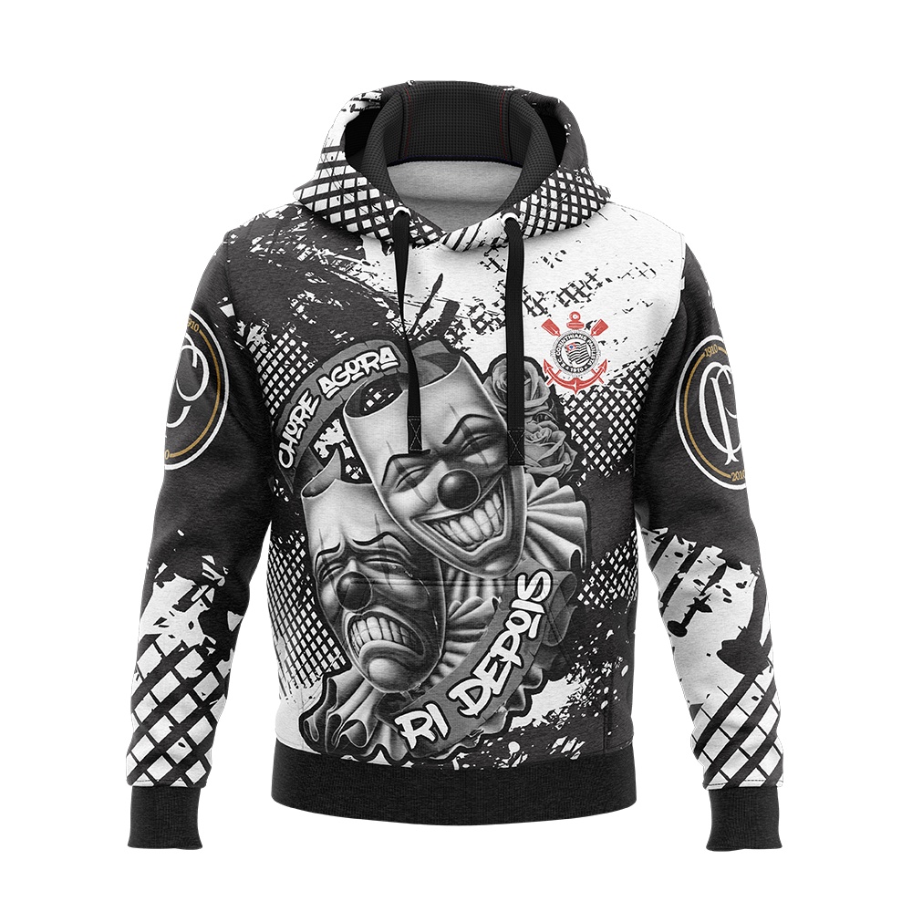 Moletom Corinthians Retro Time de Futebol Blusa de Frio Capuz Canguru