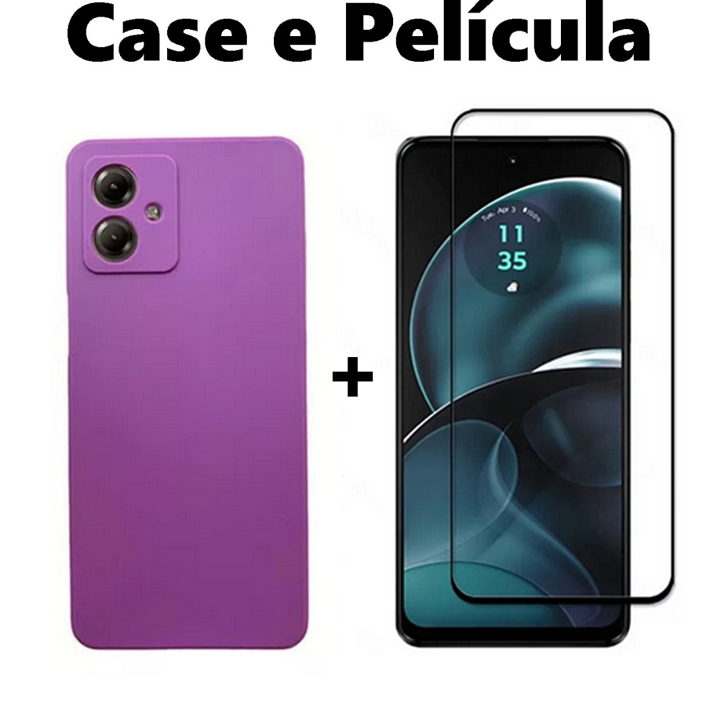 Capa Capinha Silicone Aveludada Motorola G14 Case E Película 3D Para Motorola Moto G14