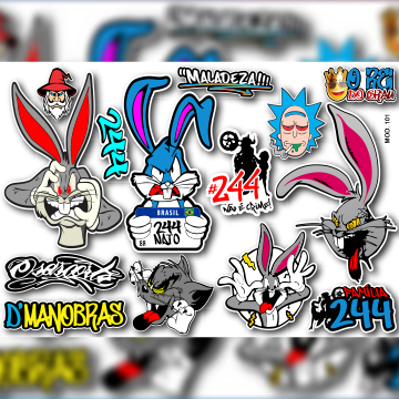 Super Cartela Adesivos Coelho 244 Pernalonga Para Moto Bike Carro PROMOÇÃO MOD.101