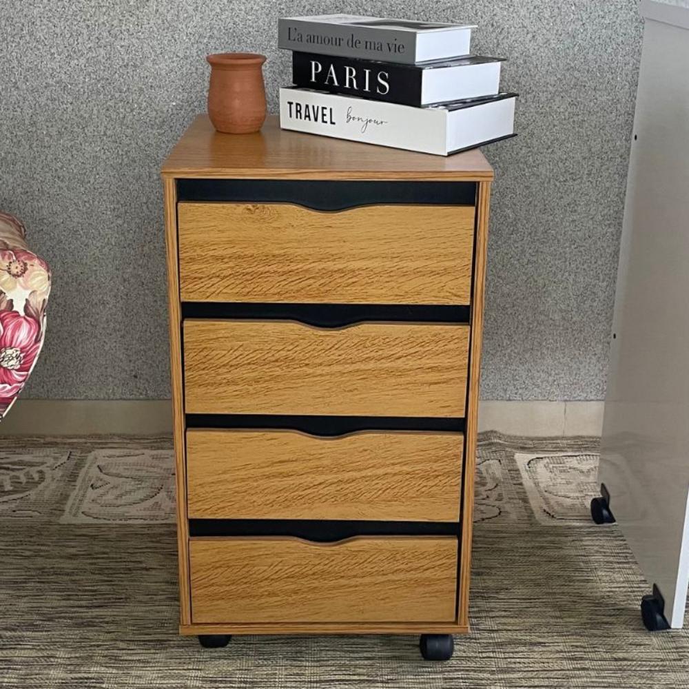 Gaveteiro Comoda com 4 Gavetas com Corrediças Metalicas e Rodizios Organizador Gaveteiro de Madeira com Rodinhas