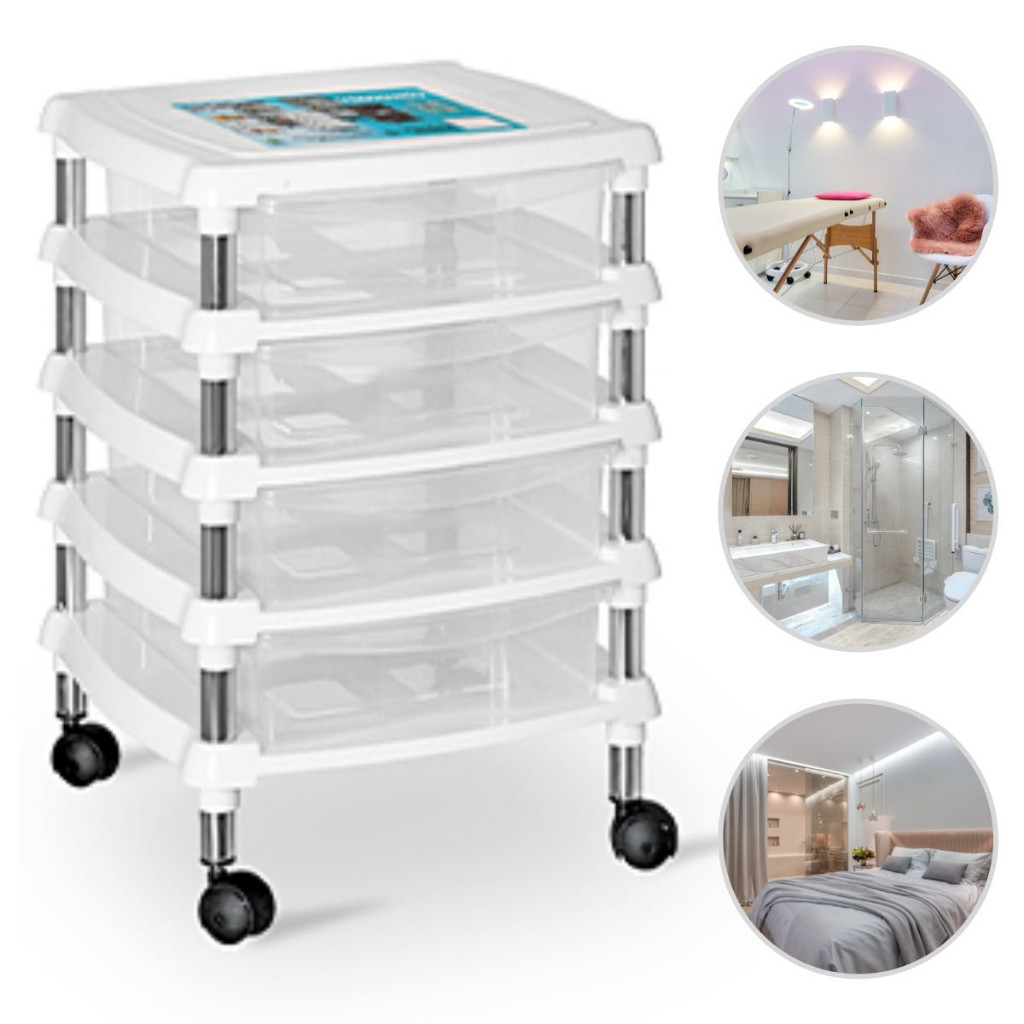 Gaveteiro Organizador 4 Gavetas Com Rodízios Branco Com Gaveta Transparente Niquelart