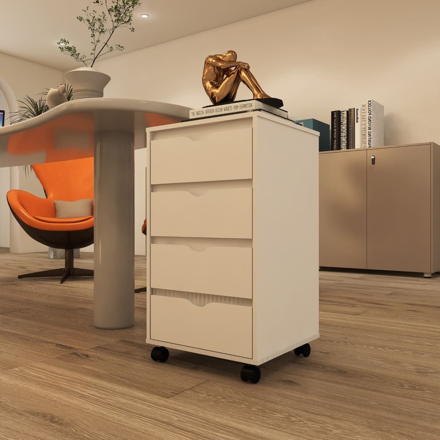 Gaveteiro Organizador para Escritório com 4 Gavetas e Pés Rodízios - Branco