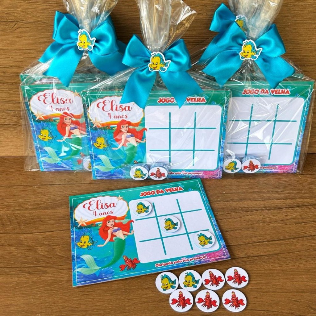Kit 10 Lembrancinhas Jogos da Velha Personalizados para Aniversário A Pequena Sereia Ariel