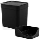 Kit 4 Peças - Lixeira 5 Litros Rattan Preta + Porta Detergente + Rodinho de Pia + Escorredor Louça Preto de Plástico