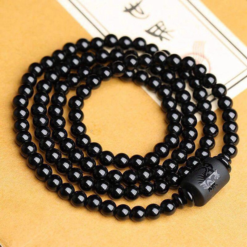 10MM Natural Obsidiana Negra Esculpida Buddha Sorte Amuleto Rodada Beads Strand Pulseira Para As Mulheres Homens Jóias | Pulseiras De Fio