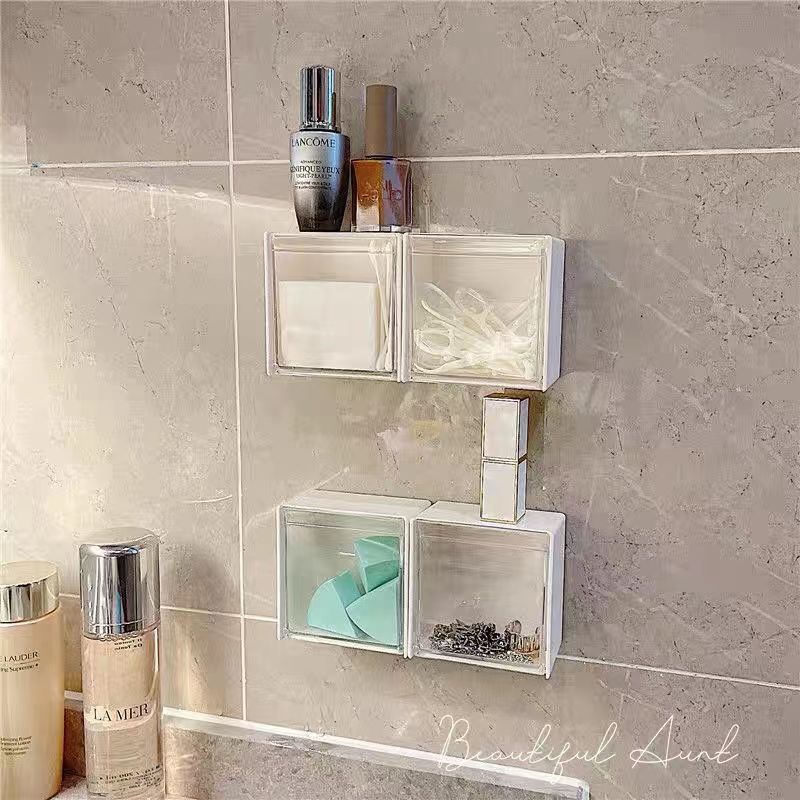 Caixa De Armazenagem Multifuncional Montada Na Parede Transparente Auto-Adesiva Para Pequenos Objetos Maquiagem Sem Furos Jóias Domésticas