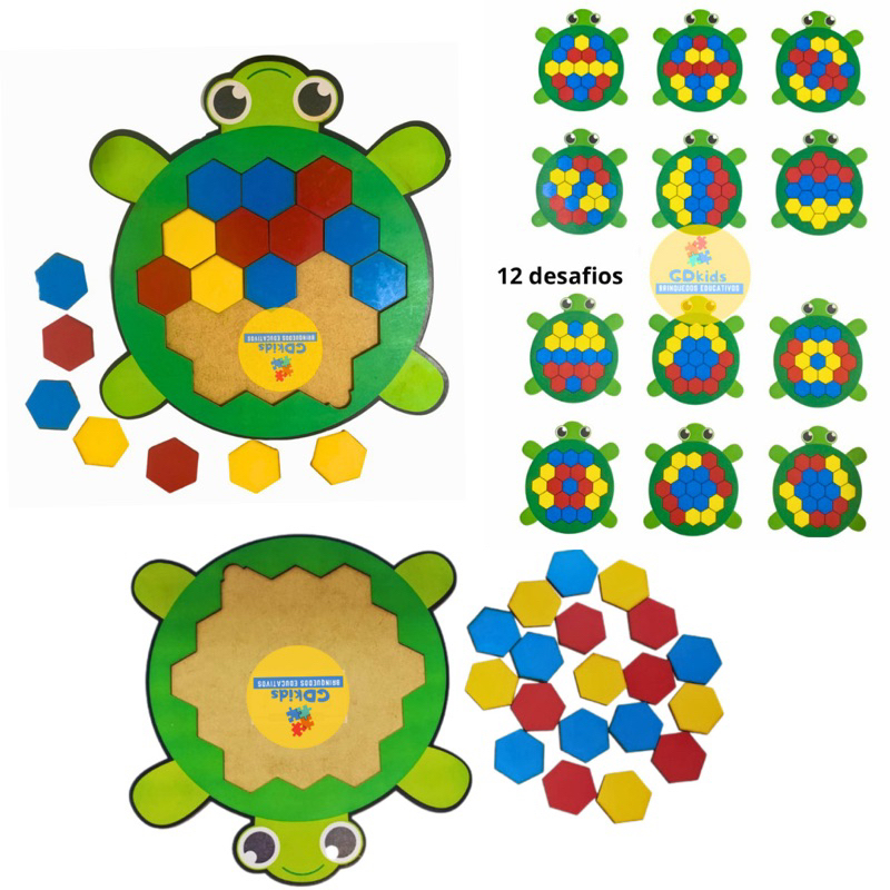 Quebra Cabeça Mosaico Tartaruga em madeira MDF Brinquedo Educativo