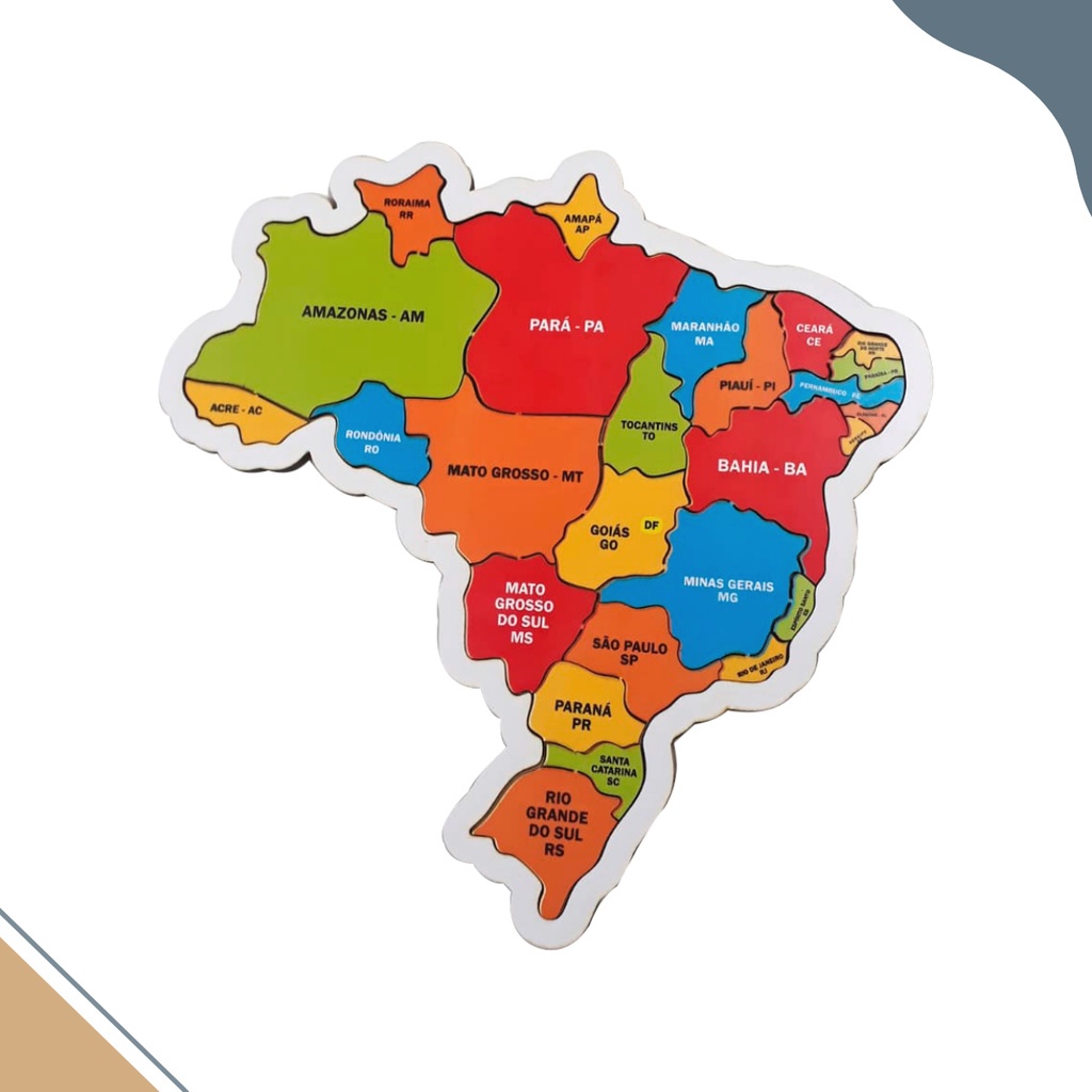 Quebra-Cabeça Mapa do Brasil Brinquedo Educativo em MDF