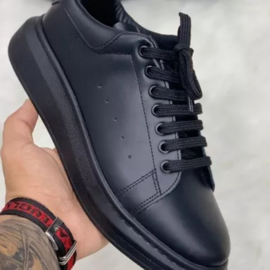 Sapatênis Masculino Original em Couro Legitimo Tenis Sneaker Sola Alta Black Style Preto Promoção