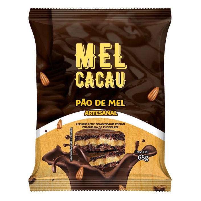 Pao de mel artesanal 68g - caixa com 12 un, mel cacau