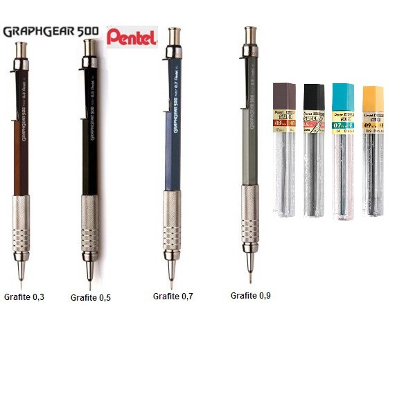 Kit Lapiseira Pentel Graphgear 500 0.3 0.5 0.7 0.9 + Grafite HB