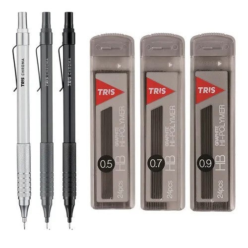 Kit Lapiseira Técnica Tris Chroma 0.5 0.7 0.9 + Grafites