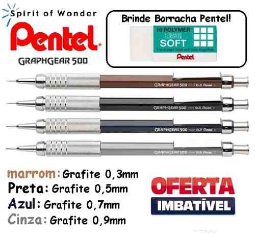 Kit Lapiseiras Pentel Graphgear 500 0.3,0.5,0.7,0.9 +brinde!