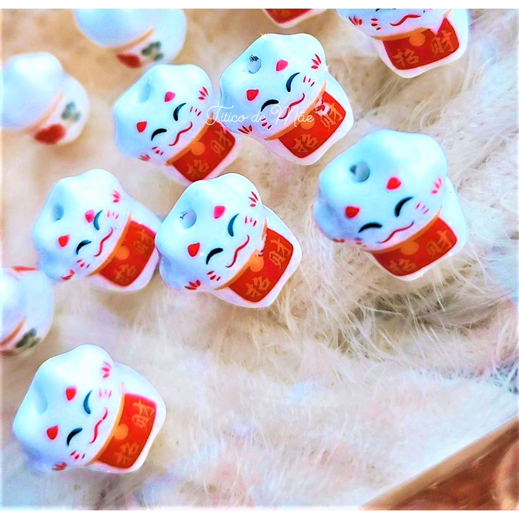 Gato da sorte de porcelana, com furo passante, chaveiro, decoração, colar,