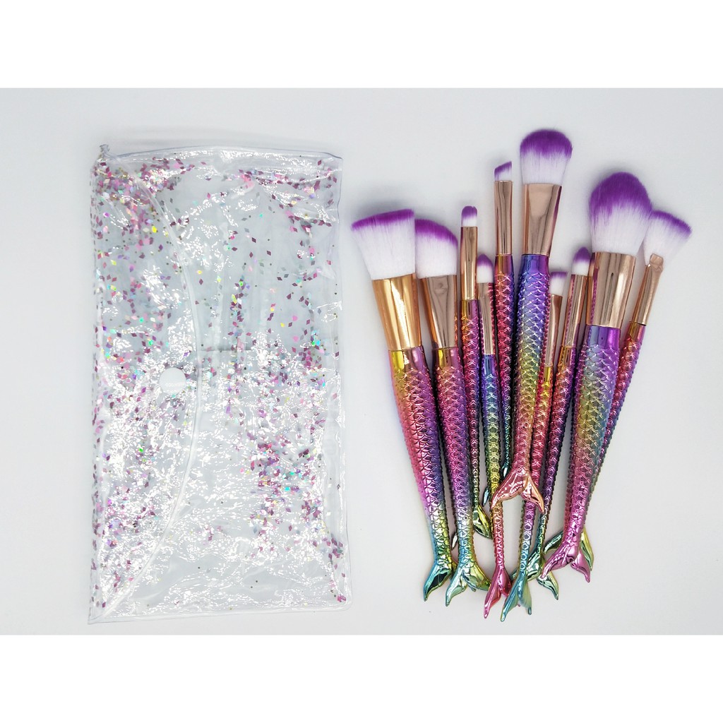 Kit de Pincéis de maquiagem 10 pçs sereia, conjunto profissional, kits de ferramentas de alta qualidade CORES ENVIADAS ALEATORIAS