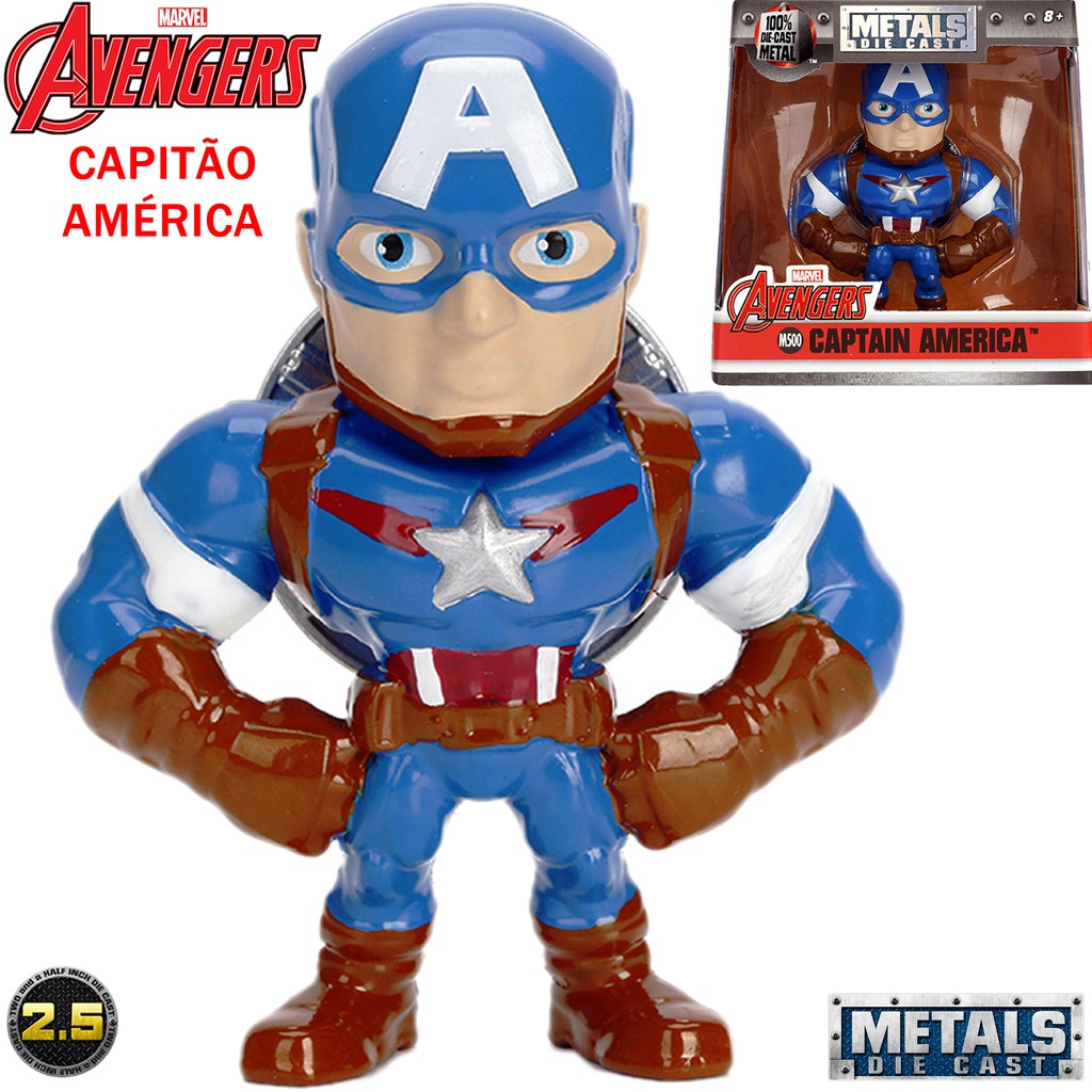 Boneco Action Figure Capitão América Marvel Avengers 6,4cm Die Cast Metal Jada MetalFigs M500