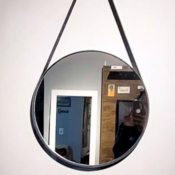 Espelho Adnet Redondo Decorativo Suspenso c/ Alça em couro Ecológico 30cm + Pino Suporte GRATÍS - Casa Domo