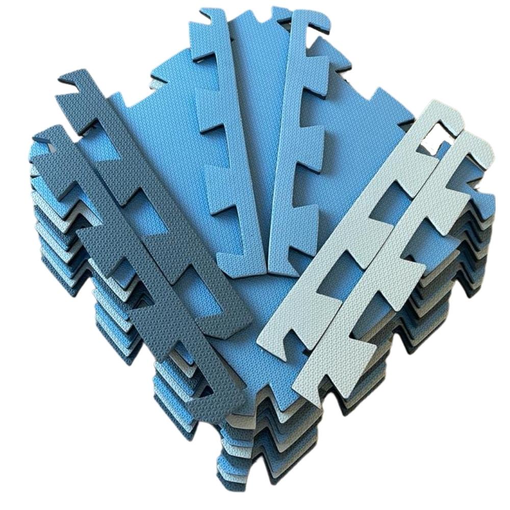 Kit 20 Tatames Tapetes Infantil Masculino - EVA Tons de Azul 50x50x 1cm