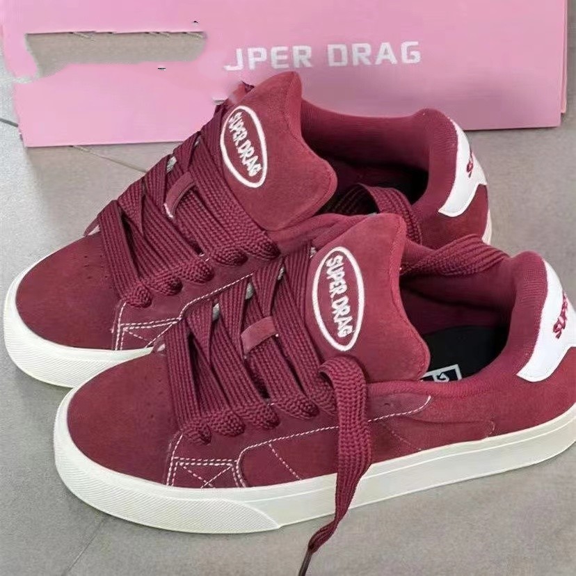 2024 Novos sapatos femininos de pão versátil primavera e outono americano vinho vintage de pele de rua esportes de rua sapatos casuais