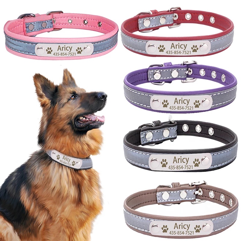 【Em estoque】Pet Dog Livre Gravado Colar De Couro Personalizado cat Pet Dog Acessórios Pet Dog Coleiras ID Tag Para Small Medium Cães