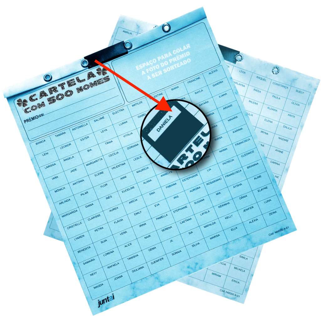 Cartela de Rifa c/ 400 Nomes de Mulheres - Impressa em papel 180g. ( Envio Rápido ) ID: 23295640223