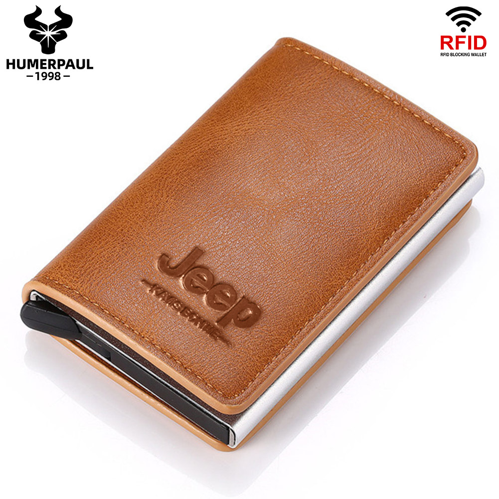 HUMERPAUL RFID Bloqueio Antitheft ID Porta-Cartões De Crédito Carteiras Finas De Alumínio De Bolso Em Couro PU Dompet Lelaki