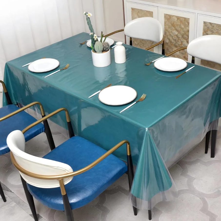 Toalha De Mesa Plástico Transparente Impermeável 4 6 8 10 12 Lugares PVC Grosso Cozinha Decoração