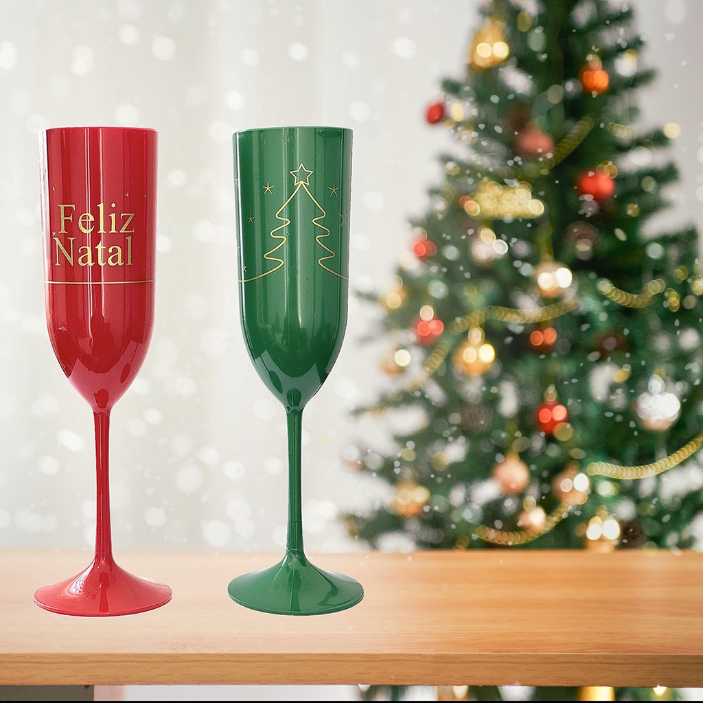 Kit 10 taças champanhe acrílica 190ml Natalinas FESTA NATAL silkadas personalizadas FIM DE ANO