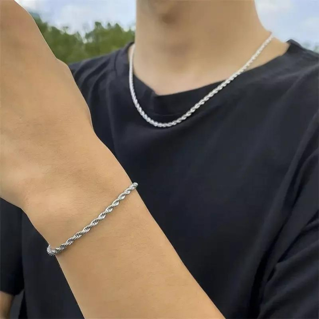 Kit Conjunto Corrente+pulseira cordão Masculino 60cm 1×1 Aço Inox Prata