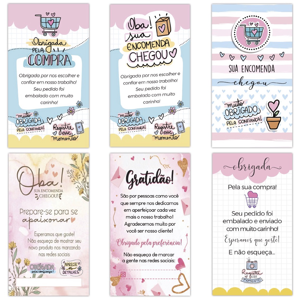 100 Cartões de Agradecimento ao Cliente Obrigado Pela Compra Modelos