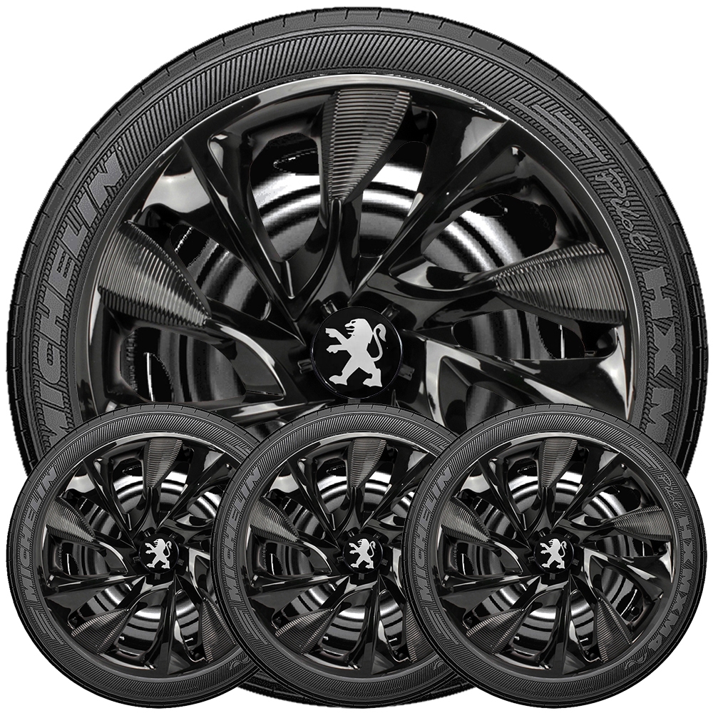 Jogo 4 Calotas Aro 13 14 Esportivas Linha Moove Preto Fosco Compativel Com 207 206 208 307 406