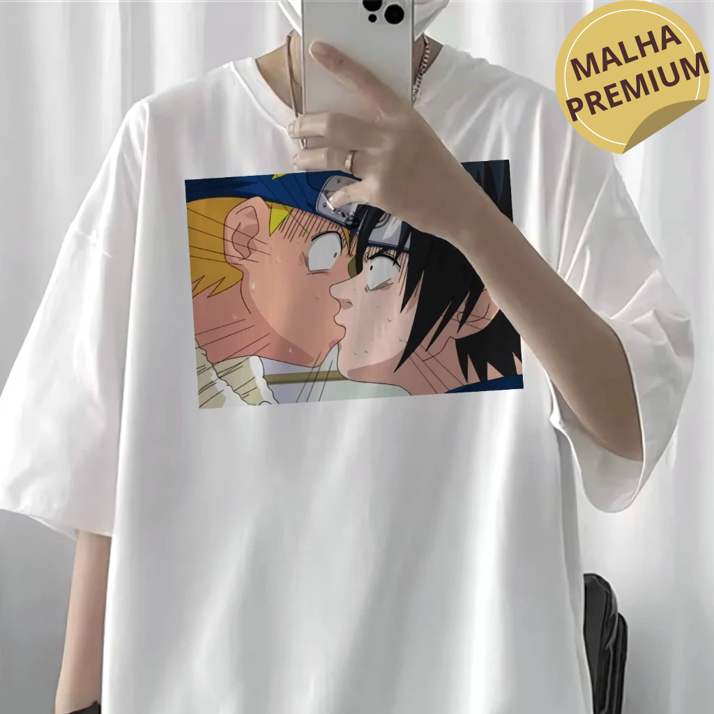 Camiseta Premium Unissex Naruto e Sasuke Anime Cena Beijo Aesthetic
