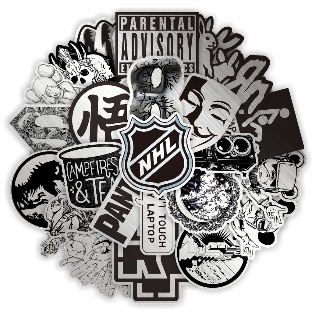 50PCS Adesivos De Metal Preto E Branco Rock Band Stickers Para Bagagem Caixa De Telefone Decalques Notebook Crianças Presente