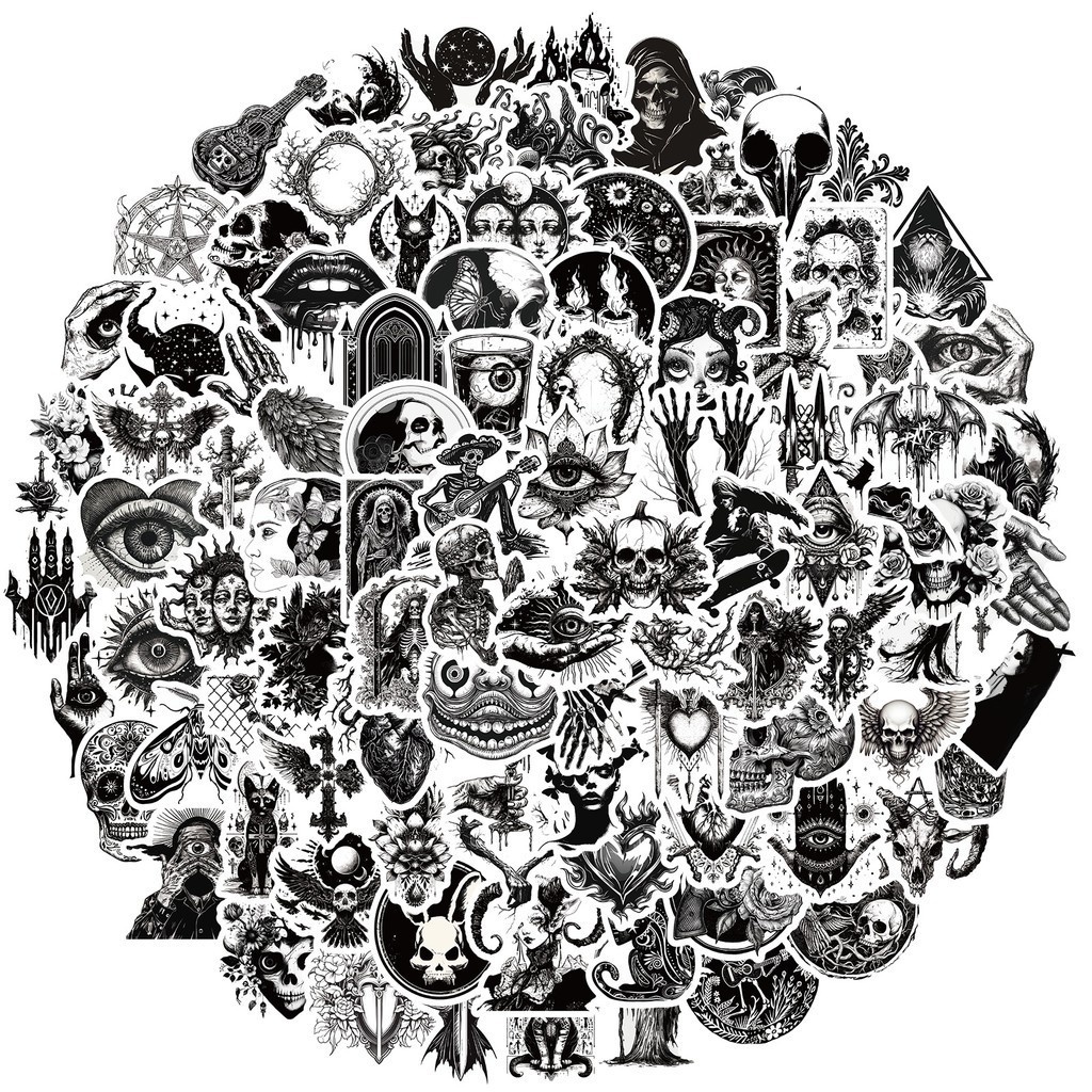 1000/50PCS Horror Preto E Branco Gótico Punk Estilo À Prova D'água Adesivos De Grafite Para Capacete De Bicicleta Decalques De Lápis De Conta Manual LanLanStickersWorld