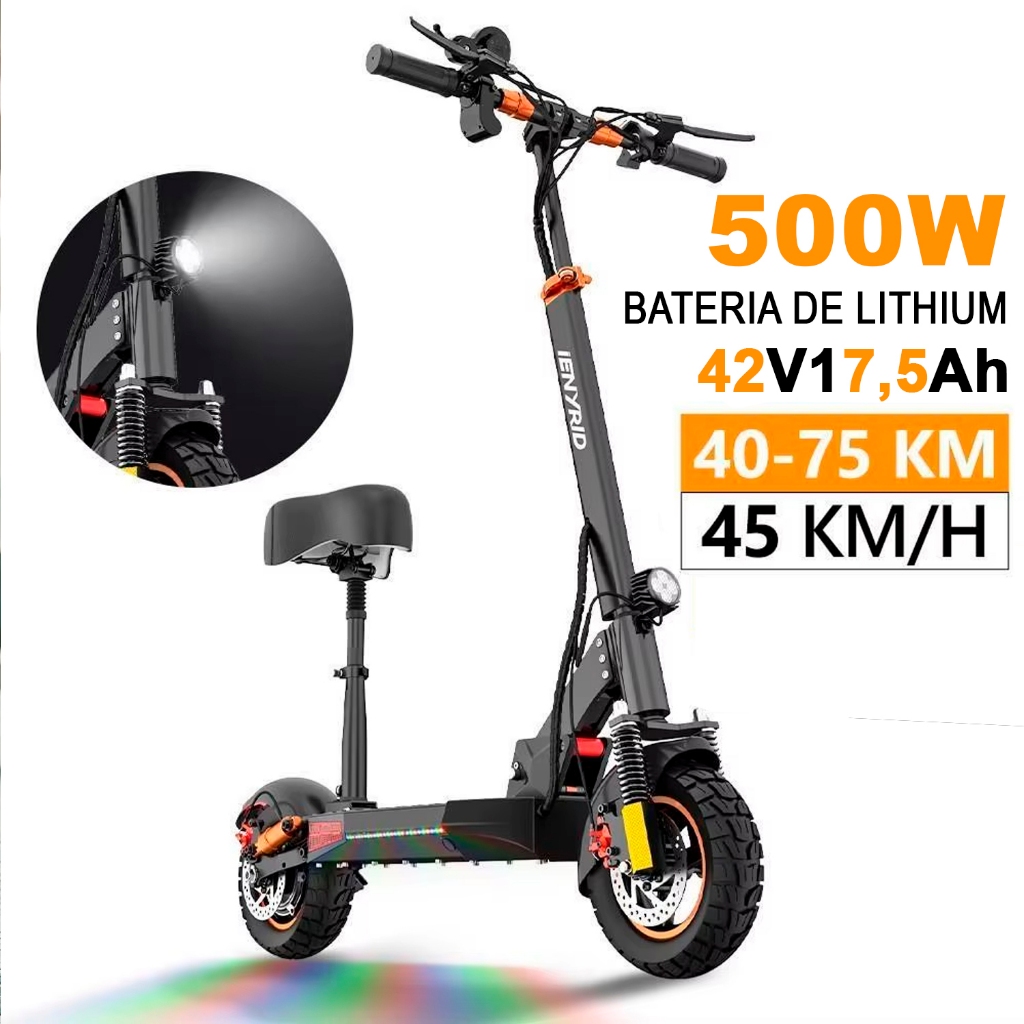 Patinete Elétrico Adulto E-SCOOTER Off-Road 500w 45KM/H com Bando e Rodas de 10' Polegadas