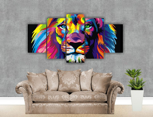 Quadro Mosaico Para Sala 5 Partes Leão Tribo De Judá