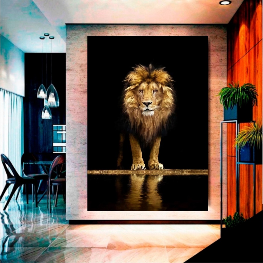 Quadro Decorativo Grande Leão Dourado Para Escritório Sala de Jantar Hall de Entrada Papel de Parede Decoração de Apartamento Quarto Moderno Leão de Judá