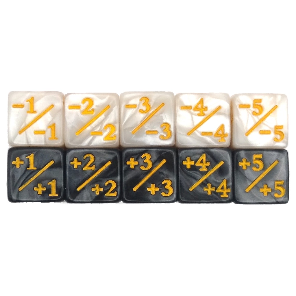 Dados D6 Marcador/Contador +1/-1 Preto e Branco Perolado para RPG/TCG + Bolsa de Veludo