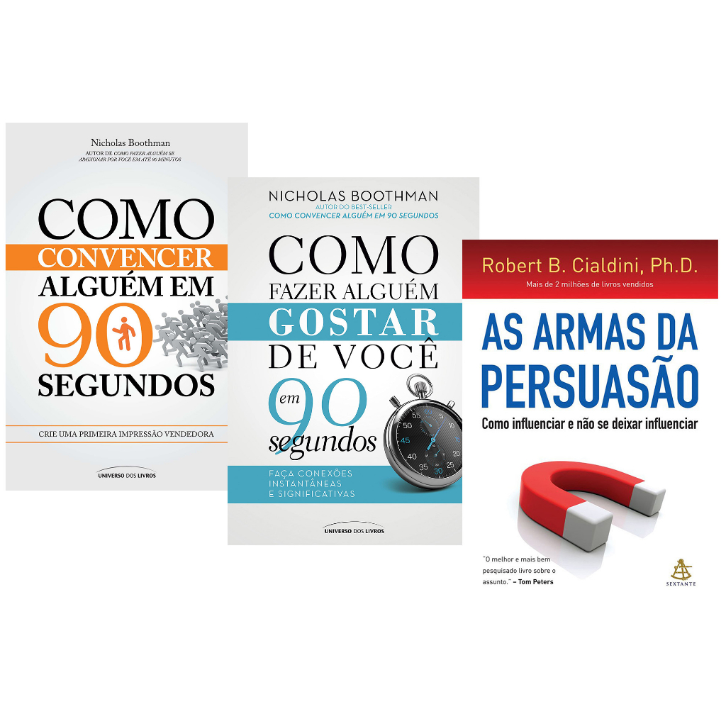 Livro Como Fazer Alguém Gostar de Você em 90 Segundos + Como Convencer Alguém em 90s + Armas da Persuassão