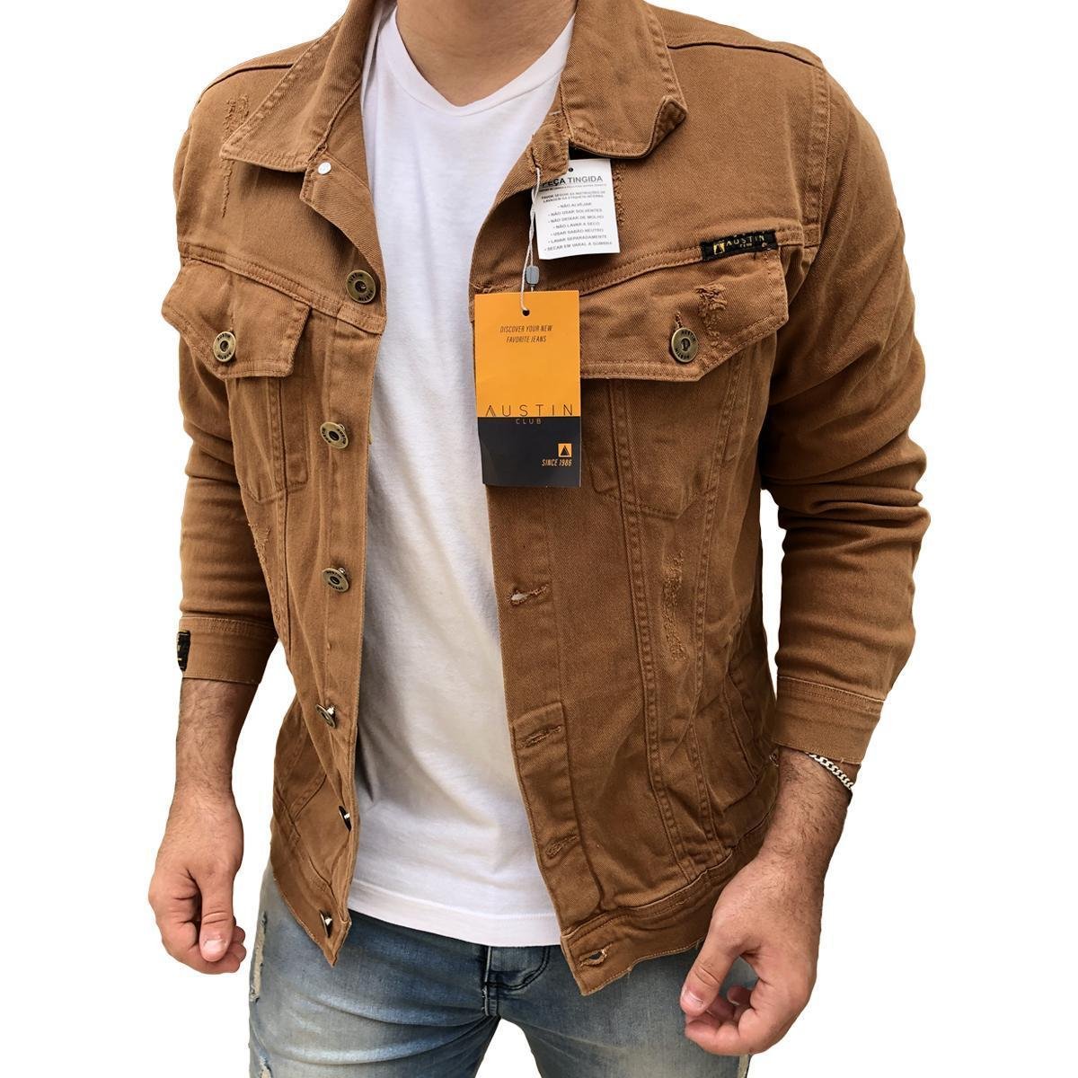 Jaqueta Sarja Caramelo Detalhes Destroyed Masculina