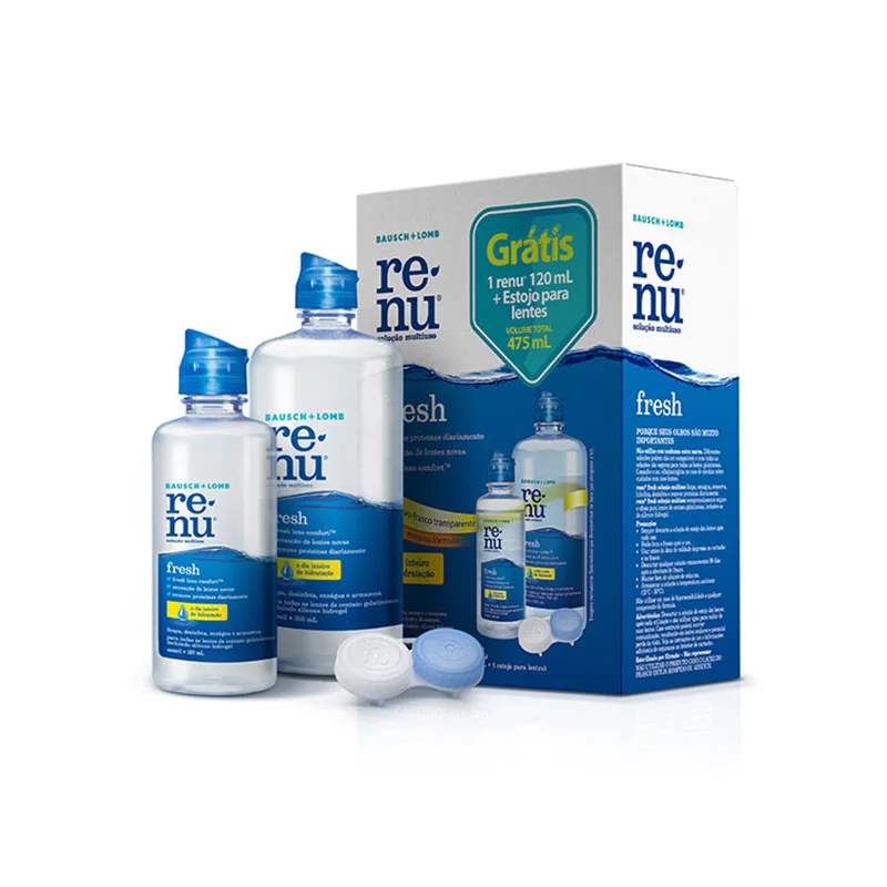 KIT Solução Limpadora para Lentes de Contato Renu Fresh 475ml (Contém 1 frasco355ml+1 frasco 120ml+1 Estojo para Lentes)
