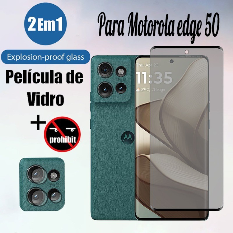 Película Anti Espião Moto Edge 50 5G 2 Em 1 Protetor De Tela De Vidro Temperado Para Motorola edge 50 Pro Ultra Fusion 5G 9D Filme De Proteção Anti-Espionagem Com Lente De Câmera