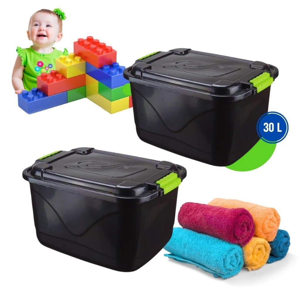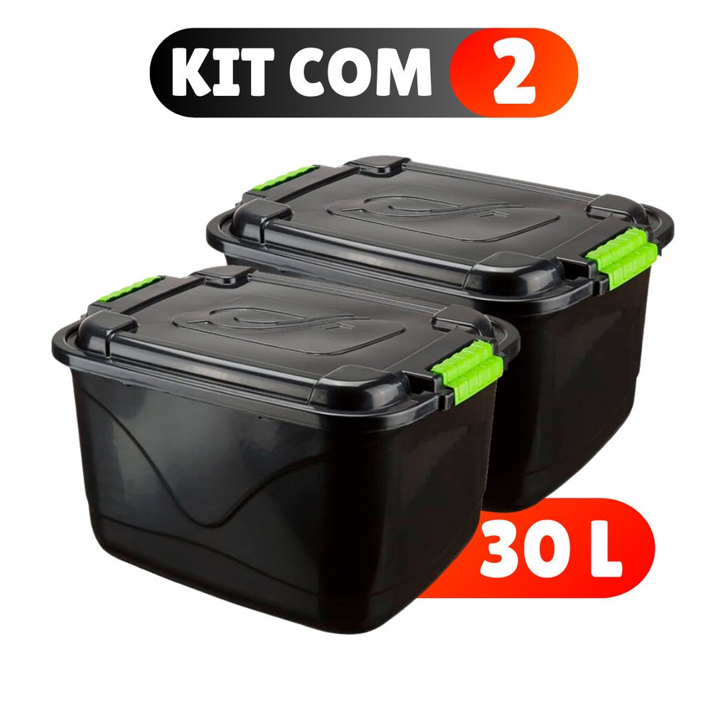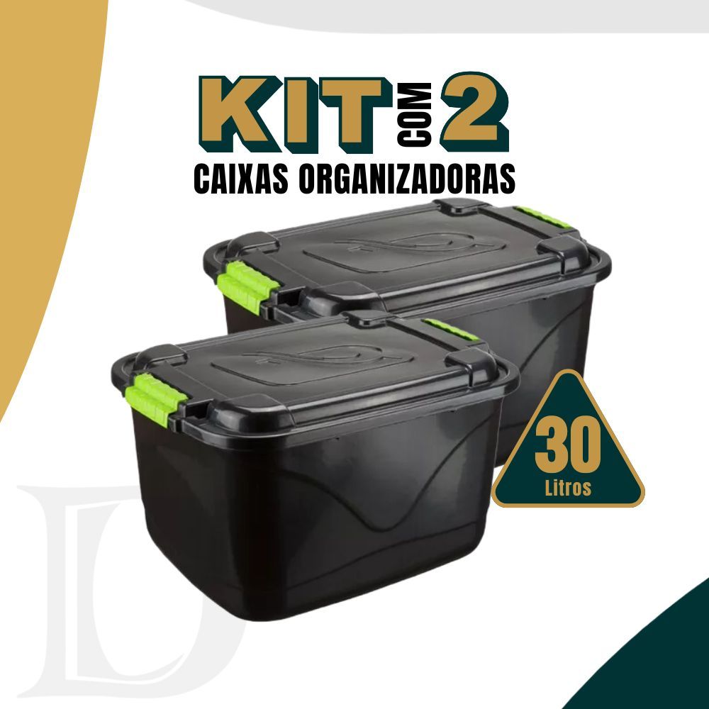Kit 2 Caixas Organizadora 30l Grande C/Tampa e Trava Cesto para Brinquedos e Multiuso