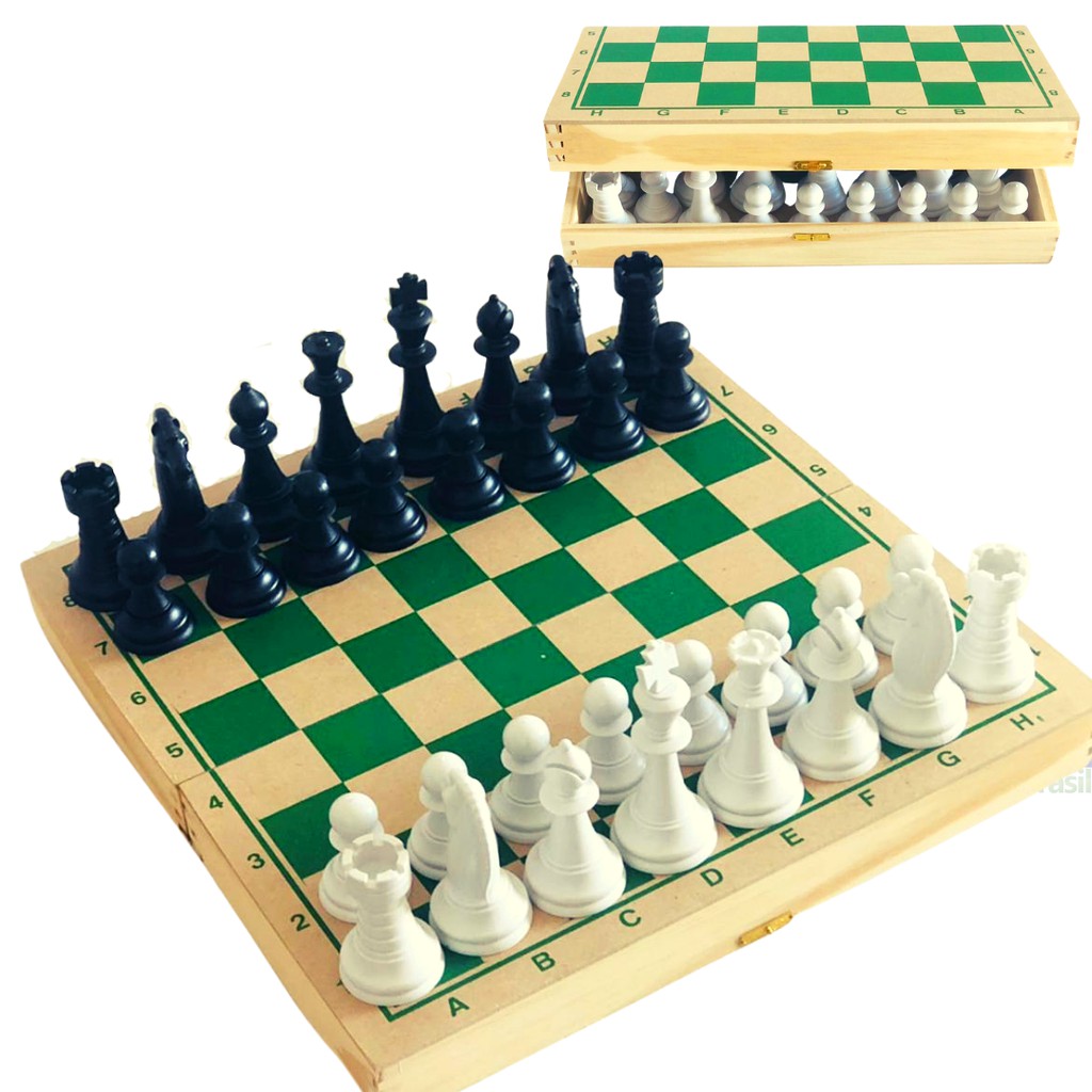 Jogo De Xadrez Dobrável Peças E Tabuleiro Em Plástico