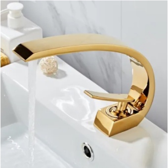 Torneira Banheiro Cascata Monocomando Curva De Onda Do Mar Dourada