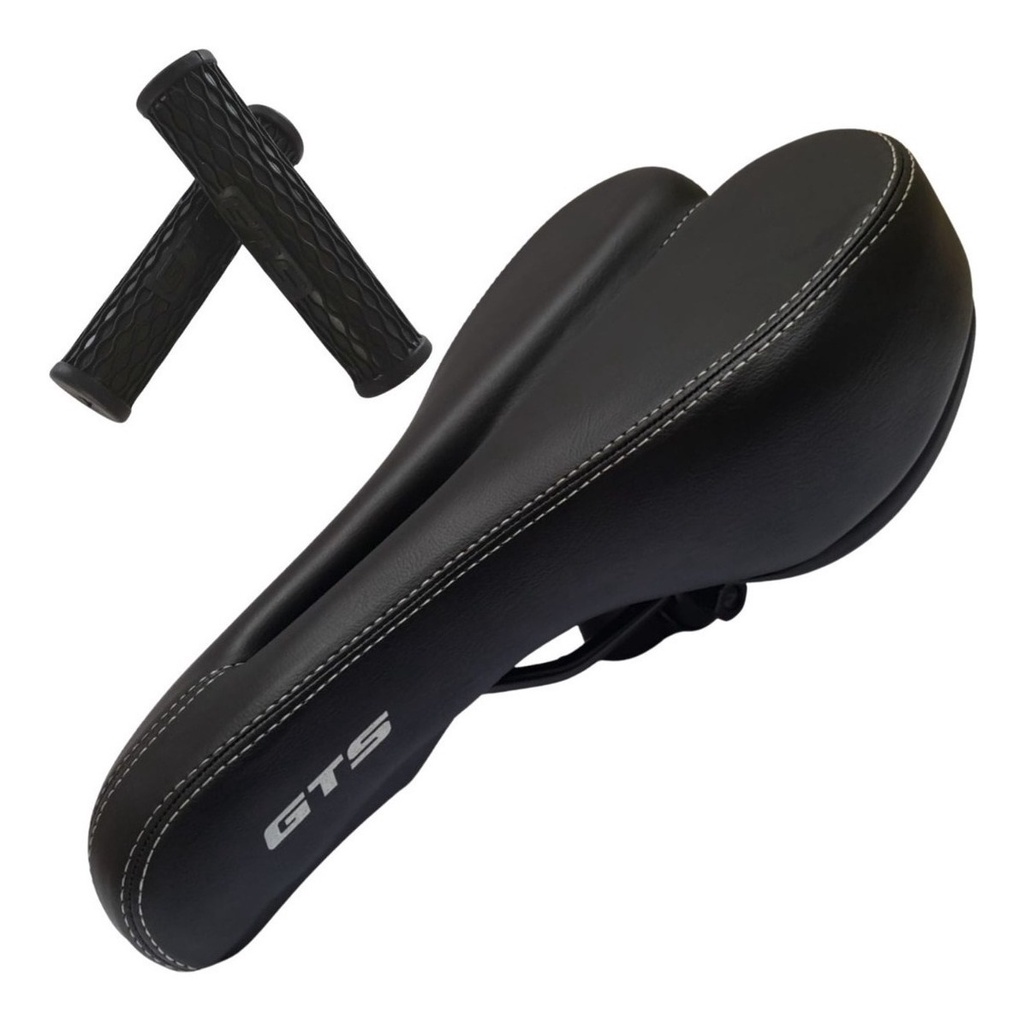 Selim Banco + Manopla Gts Tec Vazado Mtb Preto Confortável Bike